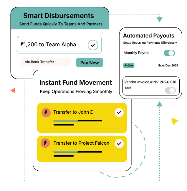 Revolutionize how your business disburses funds. Instant payouts to vendors, employees, and partners streamline operations, improve cash flow, and ensure complete transparency with minimal effort.